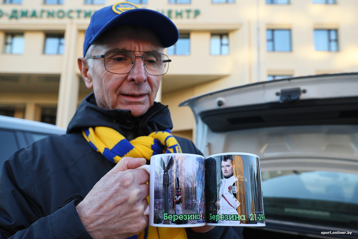 Мы завершаем наше путешествие на той же стоянке. На память о поездке болельщик дарит нам кружки, на одной из которых изображен Наполеон. Он жмет руку и обещает продолжать ездить за любимой командой даже в самые непростые времена. Как говорит Николай, сейчас БАТЭ — это история про локальный патриотизм и преданность родному клубу.