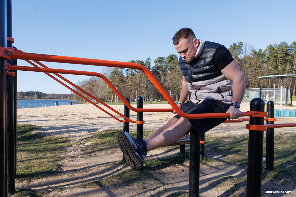 Набережная Свислочи рядом со сквером Марата Казея — популярное место для любителей воркаута. Здесь ежедневно можно встретить тех, кто качает бицепс и трицепс независимо от погоды.