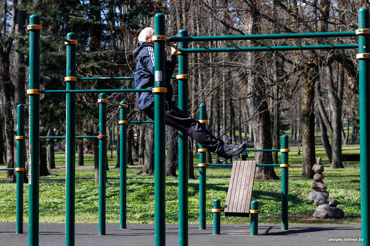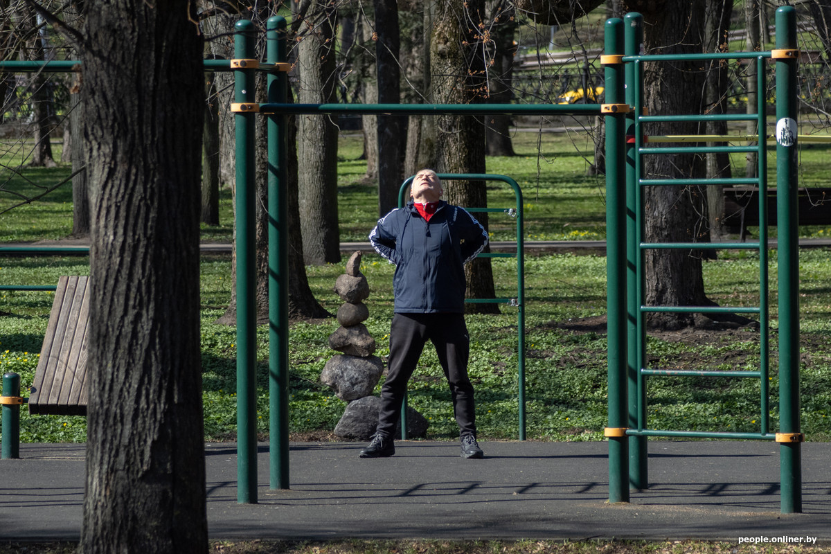 Последние дни щедро раздают солнце, и на улицах города стало больше любителей спорта и здорового образа жизни. Фотограф Александр Ружечка прогулялся по Минску и посмотрел, как горожане бегают, отжимаются, подтягиваются и просто активно проводят время.