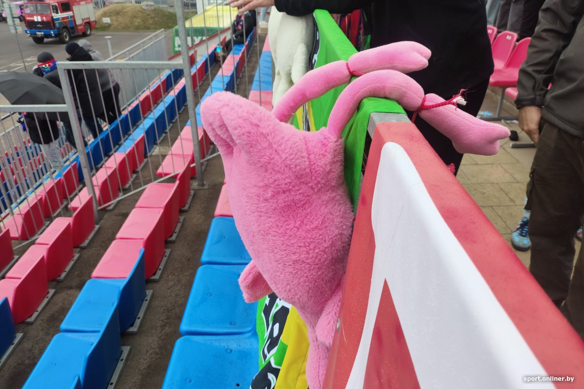 Болельщики подхватили. Кто-то просто провел с гусем на плече весь матч, а кто-то использовал его для закрепления барановичских баннеров. Как это выглядит, смотрите нашу карусель.