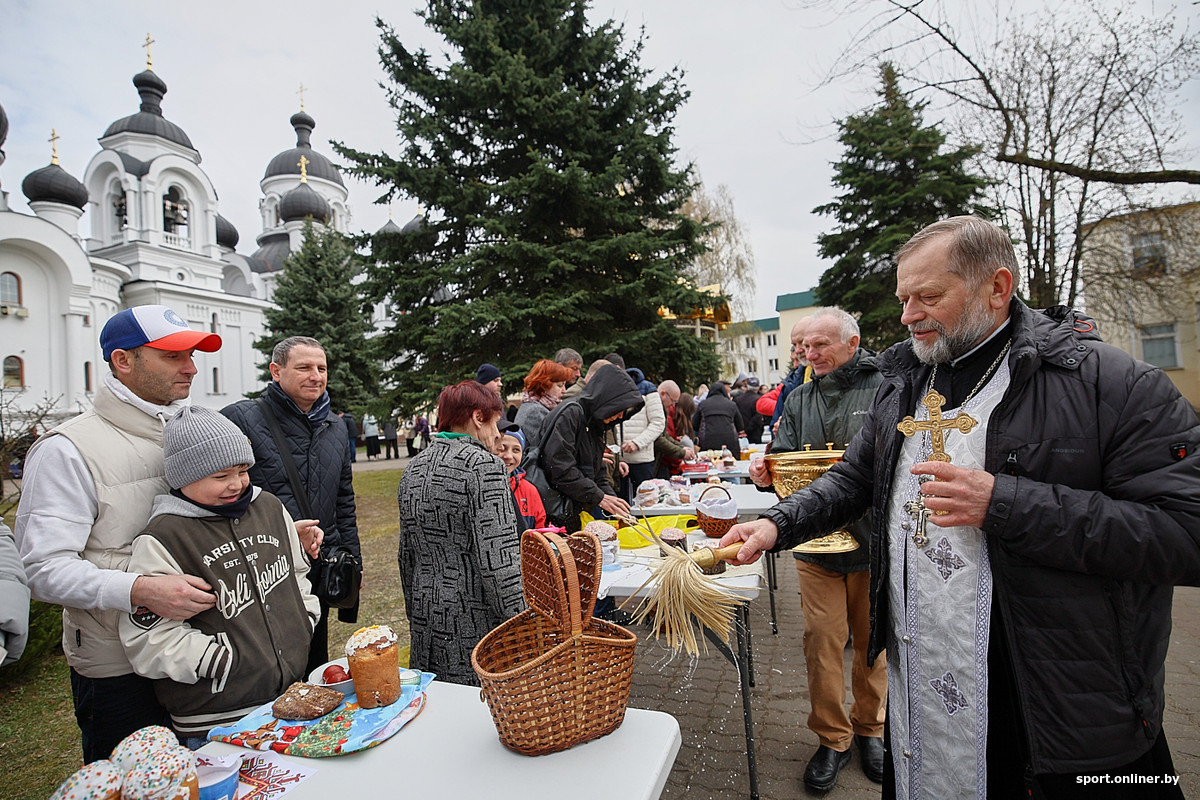 Подкрепившись, пошли гулять дальше и то и дело встречали людей с корзинками, готовящихся к Пасхе. Вскоре, следуя за потоком, добрались и до местного храма. Не зря — и сам процесс засняли, и фотографа с камерой святой водой окропили.