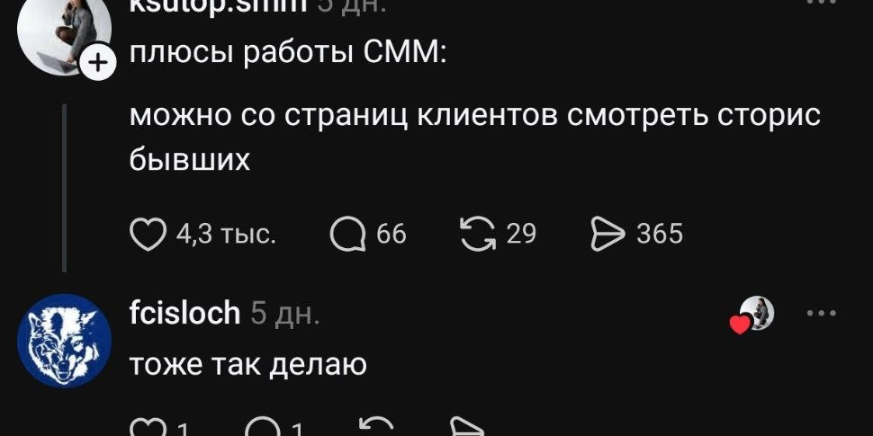 Но еще забавнее ответы на различных ветках Threads. Тут сотрудник клуба призналась (или признался), что следит за бывшими...